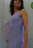 Dieser naturgeile Dame lässt sich im Badezimmer einmal so wirklich mit den Fingern befriedigen der Mann streichelt nebenbei seinen harten Schwengel und spritzt auf ihre Möpse.
